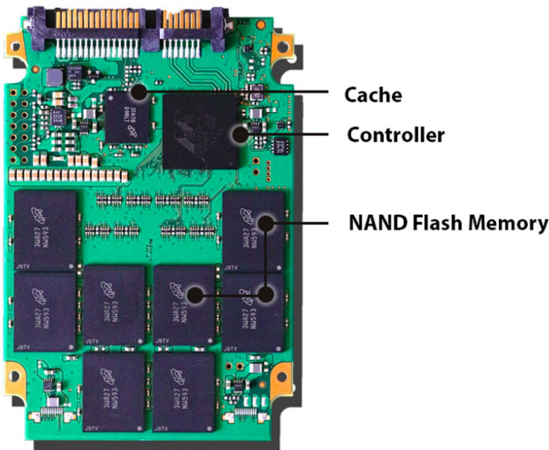 SDDs (Solid State Drive) overcame this mechanical limitations of HDD, by using NAND flash cell technology. Each cell can hold a charge that represents bits (0s and 1s) and you can combine multiple cells in series to store multiple bits per cell (1) to increase storage density.