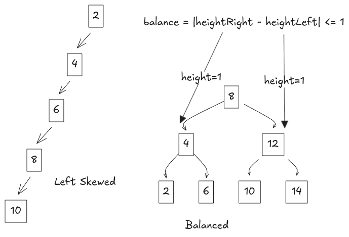 This property enables efficient searching as we can discard half of nodes at each iteration allowing search within \(O(logn)\) time for balanced BST to \(O(n)\) for skewed BST(1).